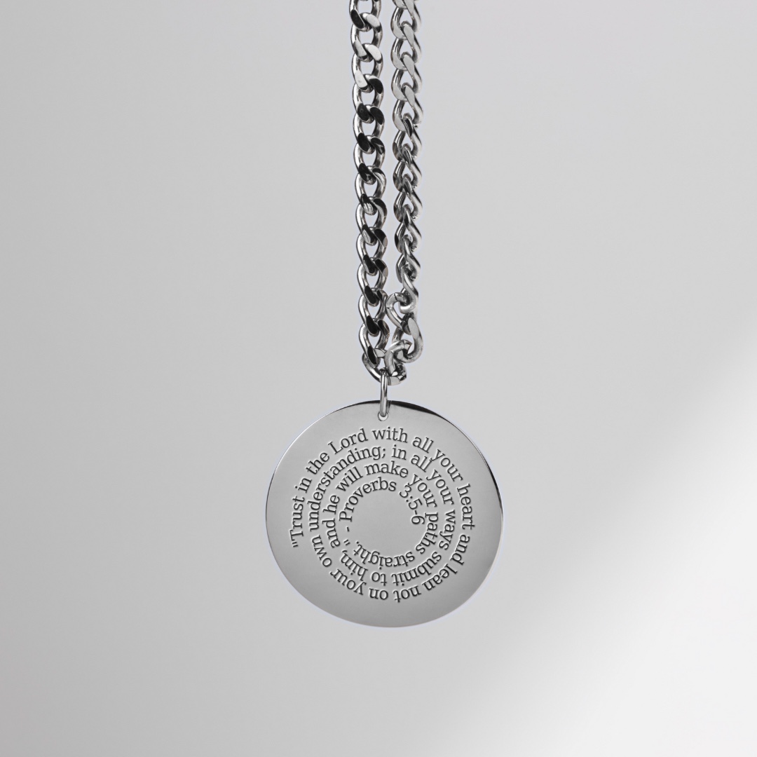 Our Christian Personalized Initial ‘L’ Pendant is a beautifully crafted piece, perfect for anyone whose name starts with ‘L’. The front of the pendant features a stunningly engraved initial ‘L’, showcasing elegance and faith. The back of the pendant includes a pre-engraved inspirational quote from Matthew 5:16: “Let your light shine before others, that they may see your good deeds and glorify your Father in heaven.” Additionally, you have the option to customize the back with your own message. Choose between spiral engraving, where the text spirals outward, or inline engraving, with text arranged in straight lines. This makes it a perfect, personalized gift for any occasion.