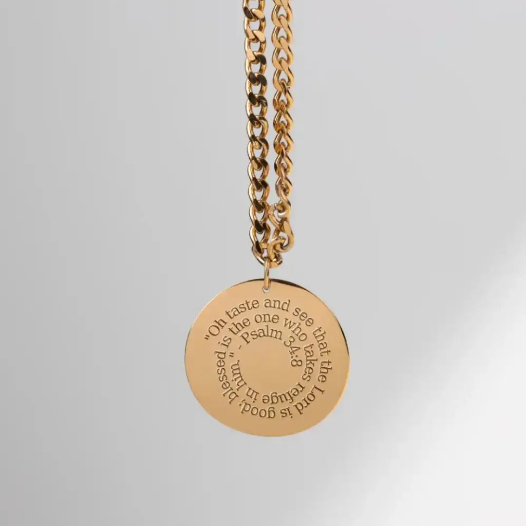 Christian Personalized Initial ‘O’ Pendant with Psalm 34:8 Engraving