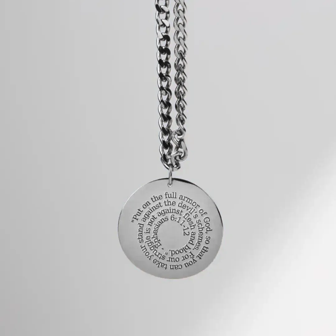 Our Christian Personalized Initial ‘P’ Pendant is a beautifully crafted piece, perfect for anyone whose name starts with ‘P’. The front of the pendant features a stunningly engraved initial ‘P’, showcasing elegance and faith. The back of the pendant includes a pre-engraved inspirational quote from Ephesians 6:11-12: “Put on the full armor of God, so that you can take your stand against the devil’s schemes. For our struggle is not against flesh and blood, but against the rulers, against the authorities, against the powers of this dark world and against the spiritual forces of evil in the heavenly realms.” Additionally, you have the option to customize the back with your own message. Choose between spiral engraving, where the text spirals outward, or inline engraving, with text arranged in straight lines. This makes it a perfect, personalized gift for any occasion.