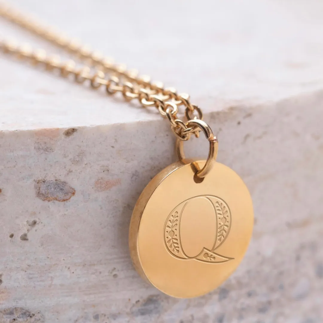 -49%Christian Personalized Initial ‘Q’ Pendant with a customizable back. Perfect for a unique faith-inspired gift.