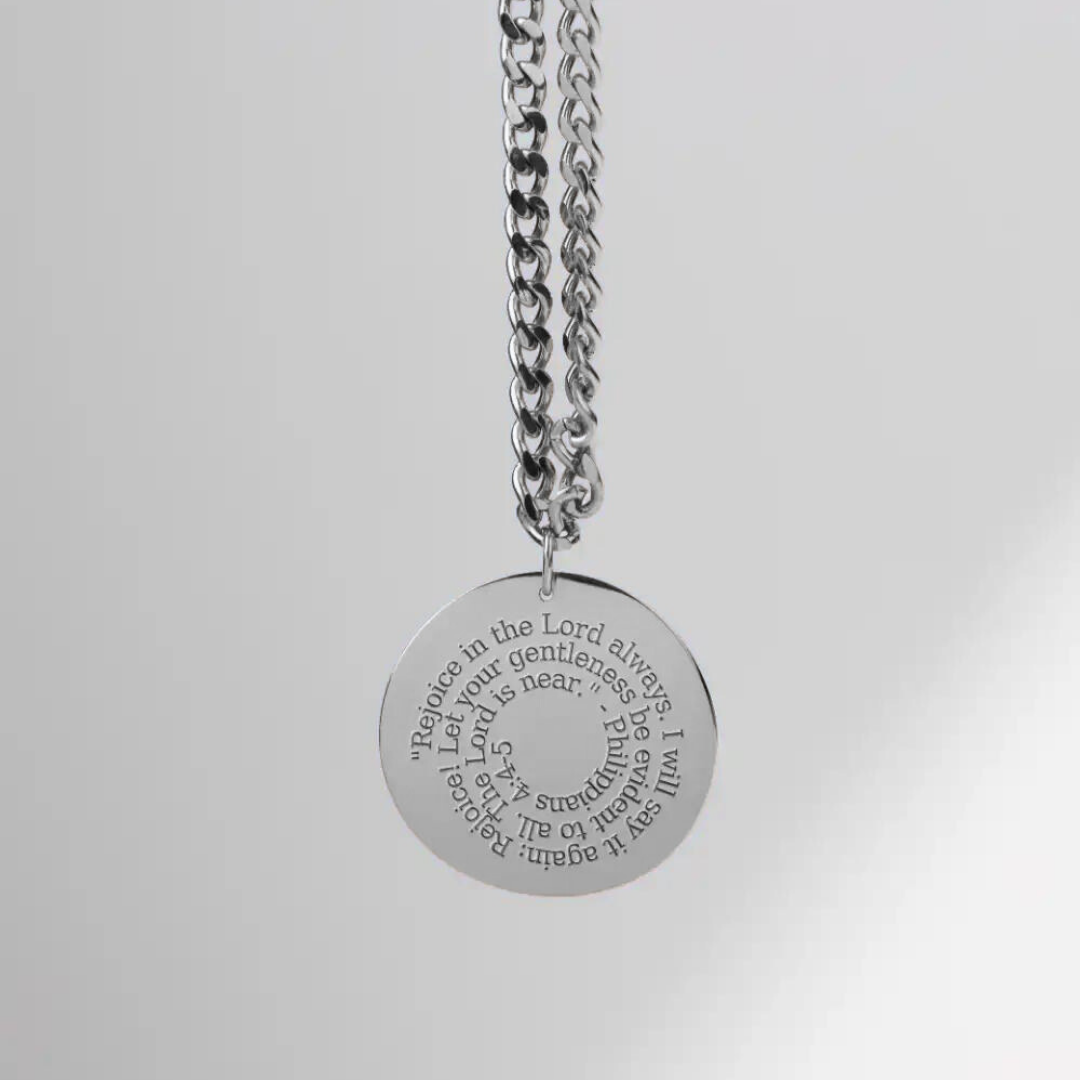 Christian Personalized Initial 'R' Pendant with Philippians 4:4-5 Engraving
