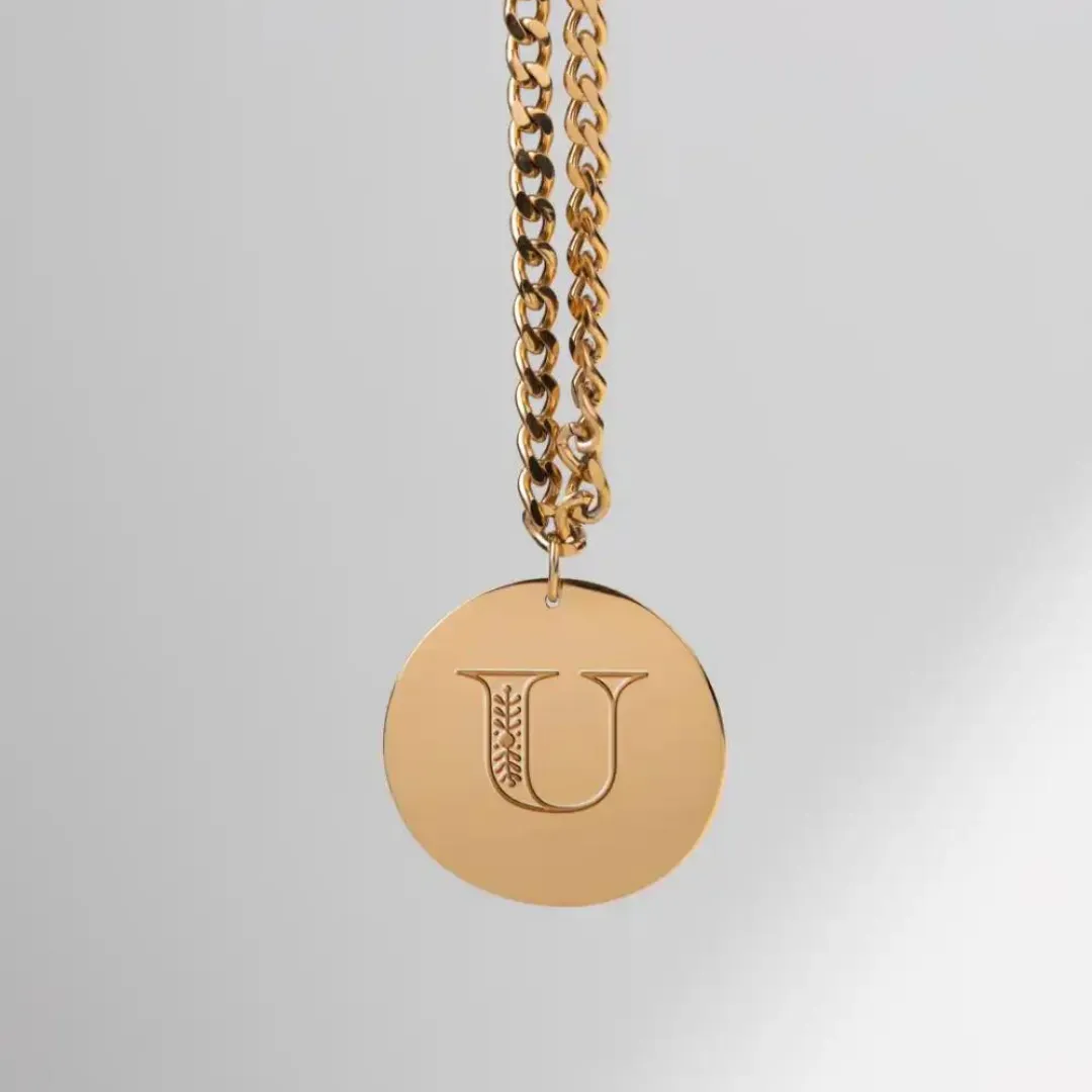 Our Christian Personalized Initial ‘U’ Pendant is a beautifully crafted piece, perfect for anyone whose name starts with ‘U’. The front of the pendant features a stunningly engraved initial ‘U’, showcasing elegance and faith. The back of the pendant includes a pre-engraved inspirational quote from Psalm 91:4-5: “Under his wings you will find refuge; his faithfulness will be your shield and rampart. You will not fear the terror of night, nor the arrow that flies by day.” Additionally, you have the option to customize the back with your own message. Choose between spiral engraving, where the text spirals outward, or inline engraving, with text arranged in straight lines. This makes it a perfect, personalized gift for any occasion.