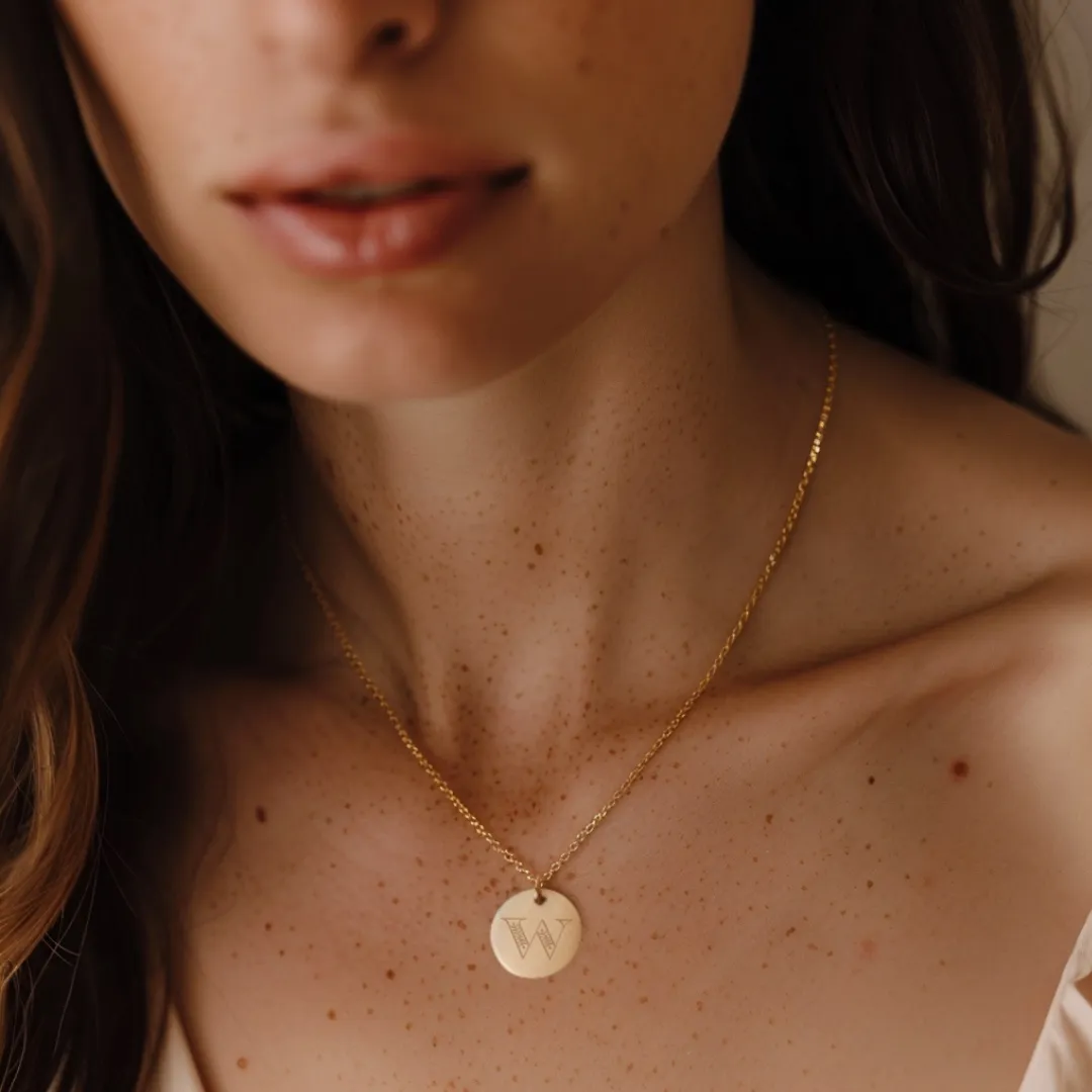 Christian Personalized Initial ‘W’ Pendant with a customizable back. Perfect for a unique faith-inspired gift.