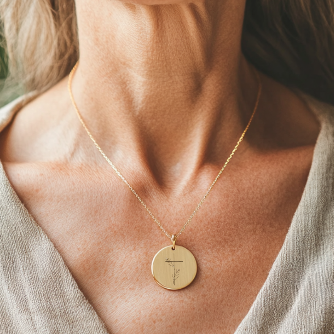 Introducing the “Ever Be on My Lips” Pendant, a stunning piece of jewelry that combines sophisticated design with a powerful expression of faith. The front features an elegant floral cross engraving, symbolizing unwavering devotion. Additionally, the back of the pendant includes the uplifting lyric: “Your praise will ever be on my lips, ever be on my lips.” This elegant pendant comes with a durable and stylish chain, making it a perfect gift for any occasion. You can personalize the back with a message of your choice, such as a name, date, custom text, Bible verse, or song lyric, in either a unique spiral engraving or traditional inline text. This pendant is available in both platinum silver plating and 18k gold plating, making it a meaningful and personalized gift for any occasion.