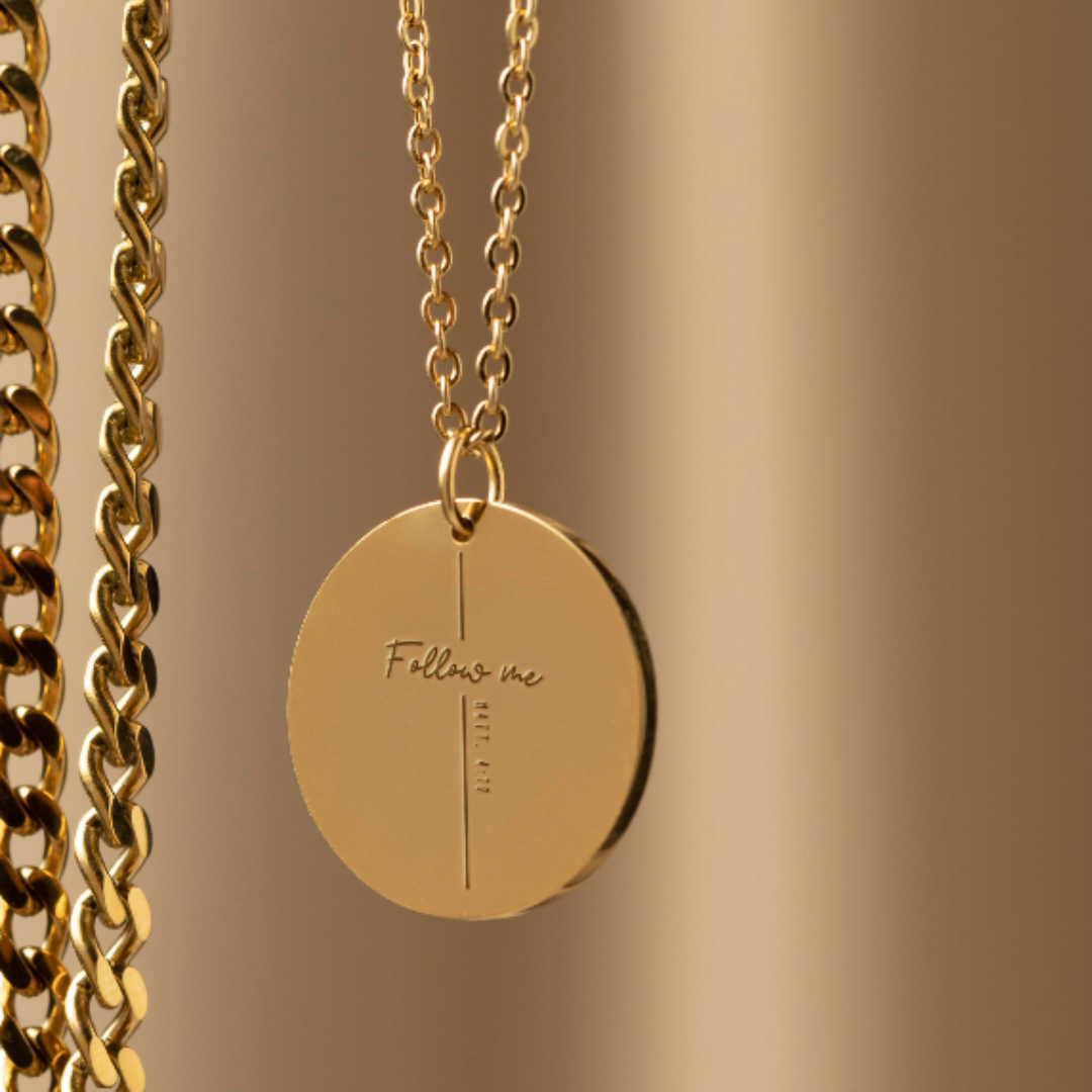 Available in 18k gold plating or silver with platinum plating, the “Follow Me” Pendant stands out as a statement of faith and elegance. The plating provides a durable and long-lasting finish. Whether buying for yourself or as a gift, the “Follow Me” Pendant is a beautiful expression of faith and love.