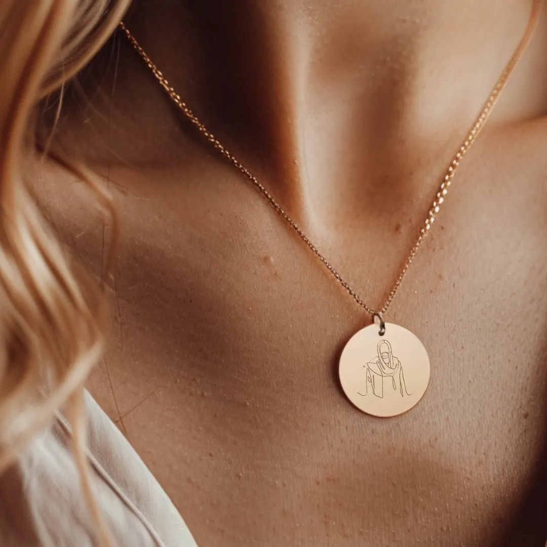 Introducing the Jesus Shepherd Pendant, a beautiful representation of Jesus as the Good Shepherd. This pendant features a finely detailed line art depiction of Jesus with a staff, symbolizing His role as the protector and guide of His flock. Perfect for daily wear or as a meaningful gift, this pendant serves as a reminder of Jesus’ unwavering guidance and care. The back can be personalized with a name, date, custom message, Bible verse, or song lyric, in either a unique spiral or traditional inline text. Available in both platinum silver plating and 18k gold plating, this pendant combines faith with elegance and personal significance.