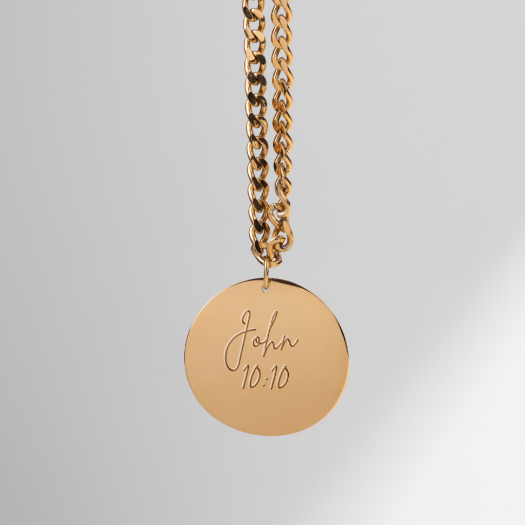 Available in 18k gold plating or platinum silver plating, the John 10:10 Bible Verse Pendant is designed to last. Its durable finish ensures that it remains a cherished expression of faith for years to come. Whether purchasing it for yourself or as a gift, this pendant embodies Christian faith and love.