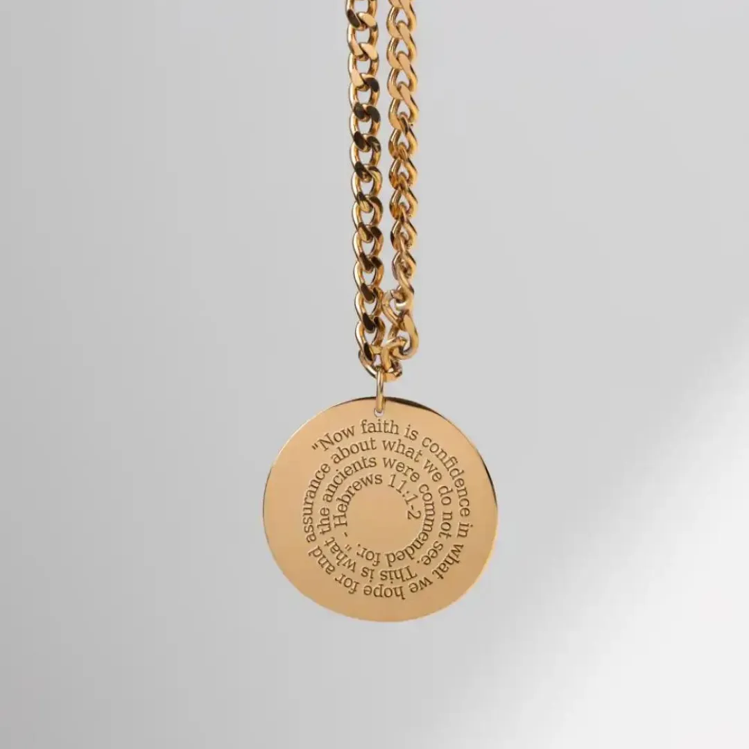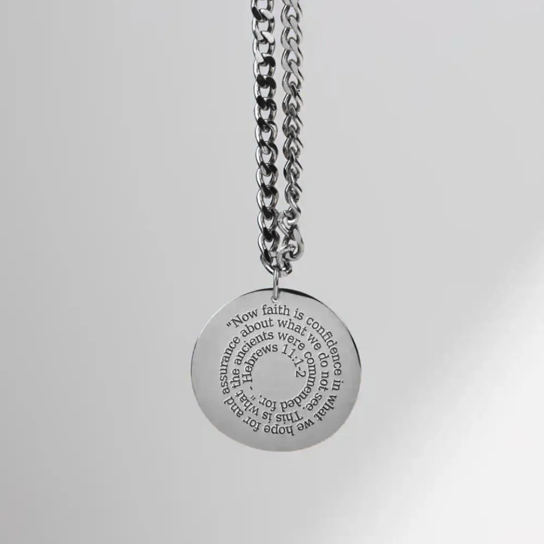 This pendant is not only a reflection of your faith but also offers a unique touch of personalization. Customize the back with your special message or verse, choosing between spiral engraving, where the text spirals outward, or inline engraving, with text arranged in straight lines. This makes it a perfect, personalized gift for any occasion.