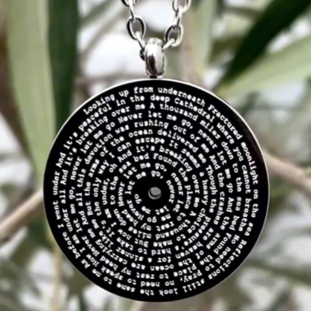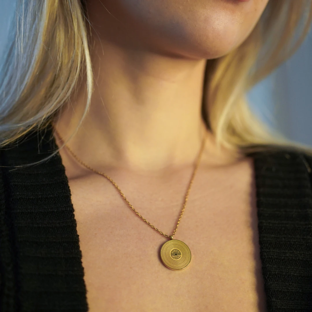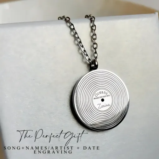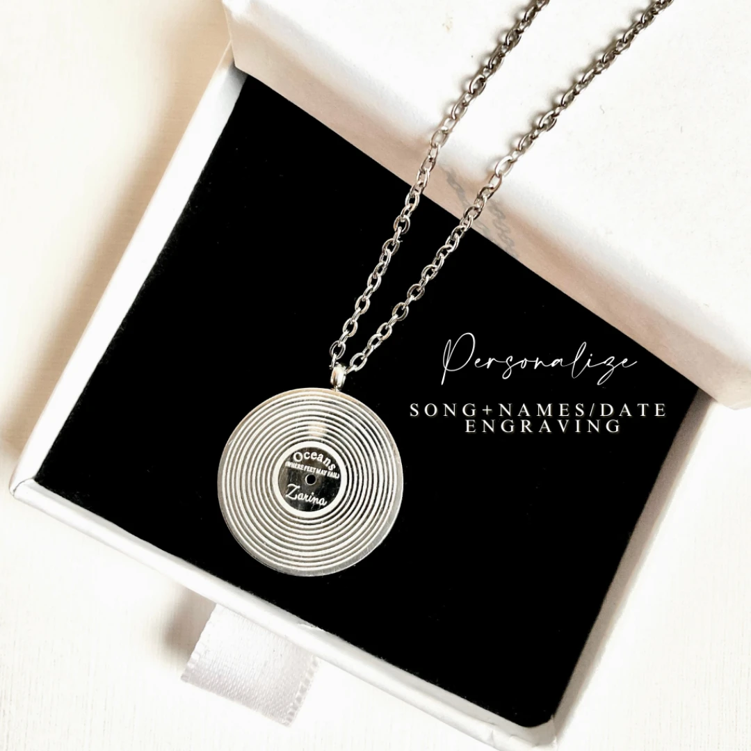 This custom-engraved Christian Music Pendant is a unique way to celebrate your faith and love for worship music. Featuring a vinyl record-inspired design, this pendant allows you to personalize it with your favorite Christian song, artist name, and a special engraving such as your name or a meaningful date.